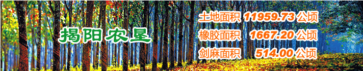 廣東省揭陽農(nóng)墾集團(tuán)有限公司(農(nóng)墾局)下轄6個(gè)農(nóng)場(chǎng)有限公司。墾區(qū)管轄26個(gè)代管村,現(xiàn)有總?cè)丝?.11萬人,墾區(qū)土地面積17.77萬畝,目前種植天然橡膠3.13萬畝,水果 2.57萬畝,光伏農(nóng)業(yè)0.8萬畝,并探索發(fā)展一批特色產(chǎn)業(yè)等。
